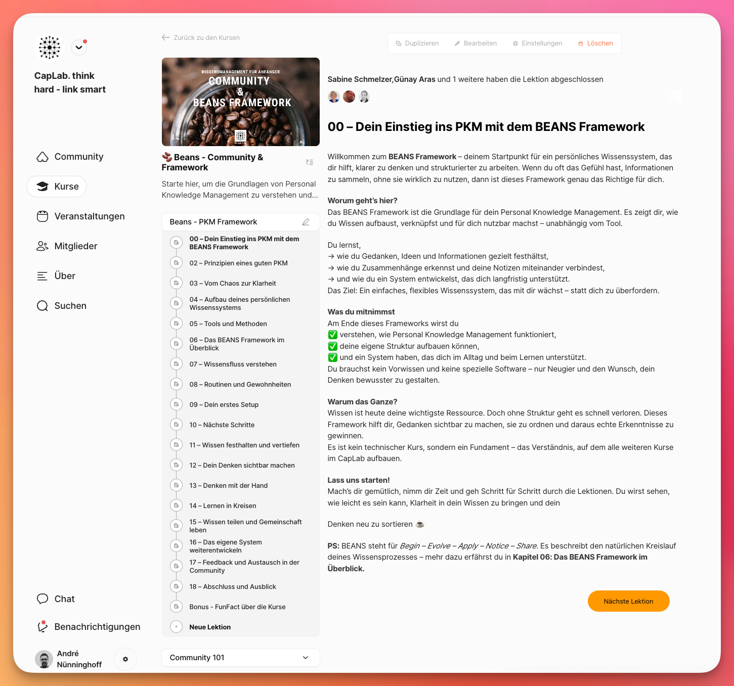 Im CapLab Community beschäftigen wir uns genau damit. Nicht mit Tooltricks, sondern mit Denkmodellen, Struktur und nachhaltigen Systemen. Nicht perfekt. Sondern passend.