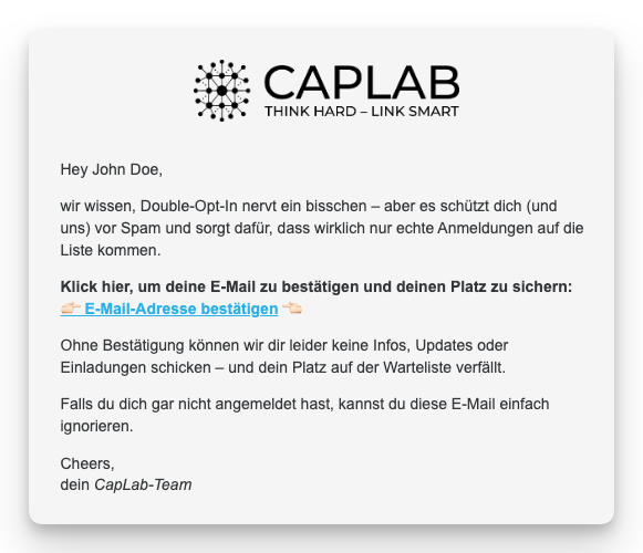 Ohne Klick können wir dir leider keine Updates, Informationen oder Einladungen zuschicken – und dein Platz auf der Warteliste verfällt.